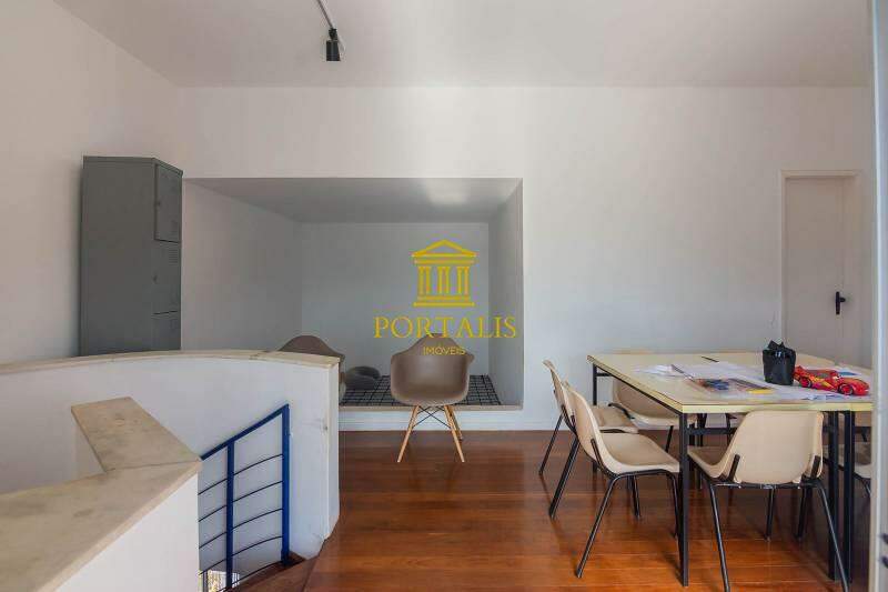 Ampla sala com piso em tábua corrida, versátil para home office, sala de TV ou espaço de convivência.