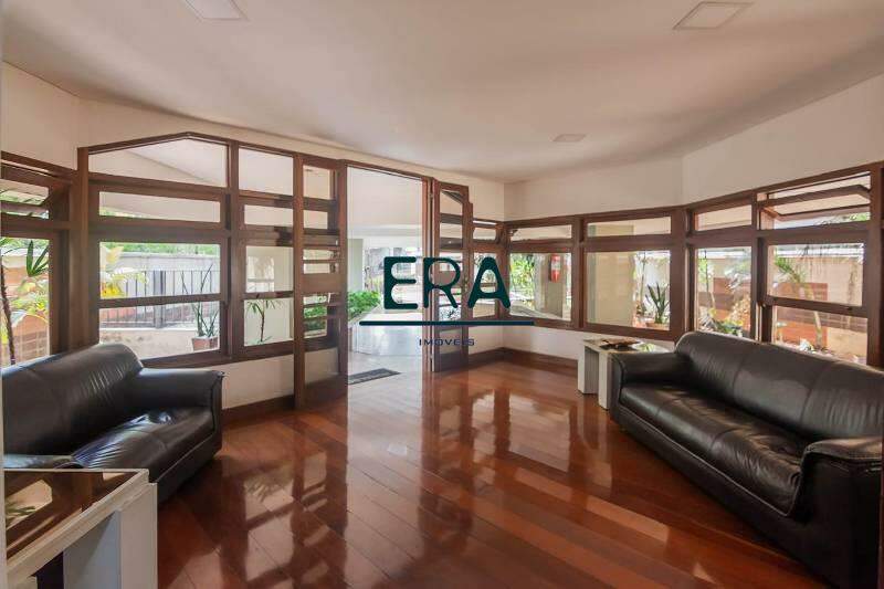 Ampla sala com piso em tábua corrida, versátil para home office, sala de TV ou espaço de convivência.